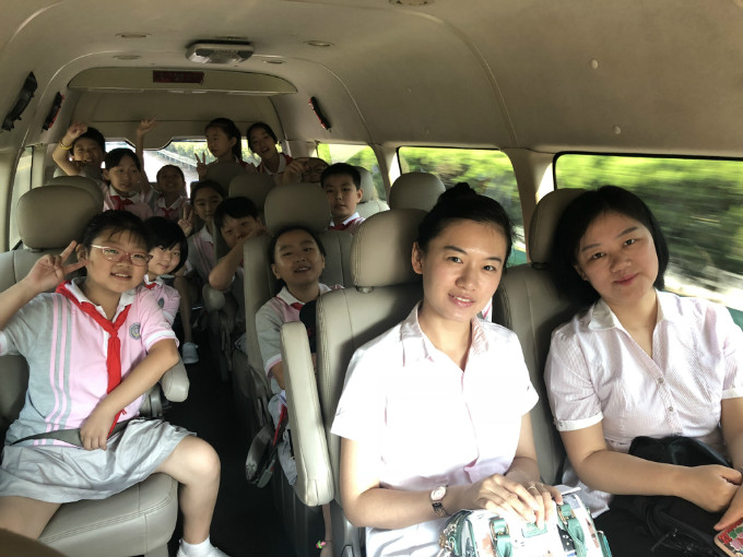 一路上,孩子们笑声朗朗,激动不已。近过一个半小时的车程,经过了弯曲的山路,大家终于抵达了目的地。穆寨中心小学的师生们热情有礼,给我们留下了最初的美好印象。