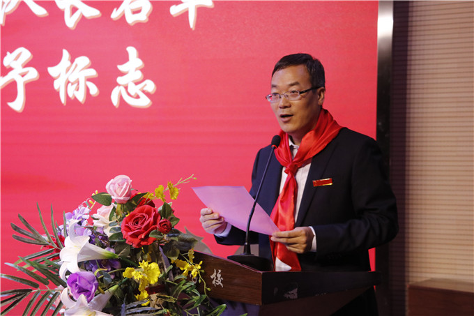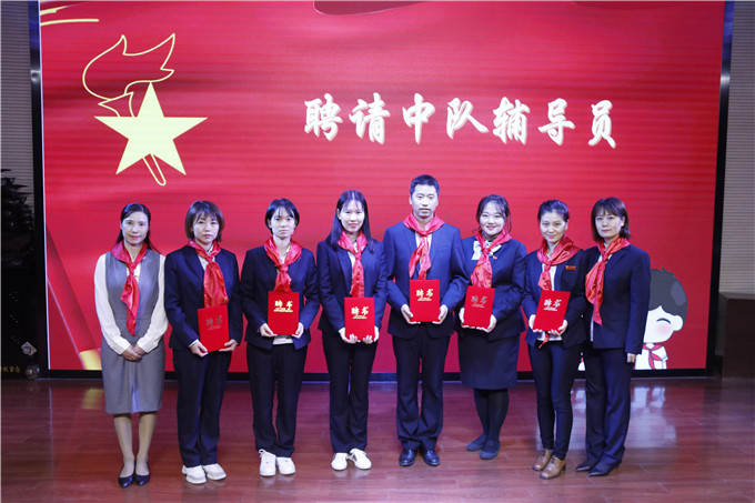家委代表、校领导班子成员为新一届大队委颁发聘书、佩戴标志