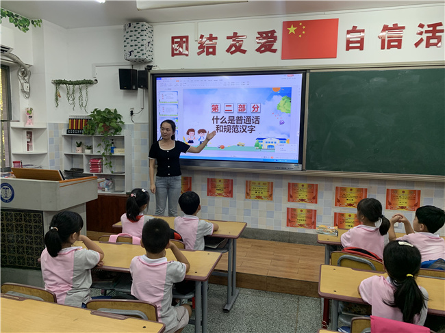 为了使广大学生热爱祖国语言文字,规范使用国家通用语言文字,增强学生文明说话和规范书写的意识,9月13日下午,各班级积极开展以“写好规范字,讲好普通话”为主题的主题班会。班会形式多样,内容丰富,老师们讲述了说普通话的重要性和好处,孩子们认真地听老师普及普通话的相关知识,知道了什么是普通话、今年是第几届全国推广普通话宣传周、具体时间是哪几天等常识。通过本次主题班会活动,学生们纷纷表示以后在校园里、日常生活中都要坚持说普通话,使用规范字,用好规范字,从现在做起,从自身做起。