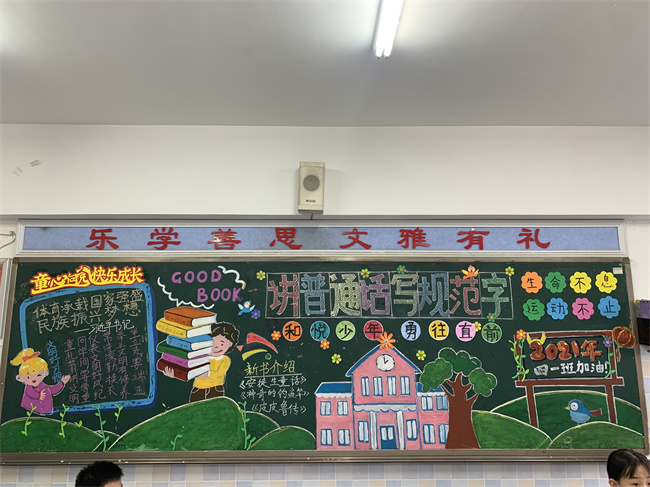 本次黑板报评比要求以推广普通话、文明礼仪、运动健康、少先队基础知识为主题,要求字迹清晰端正、思想健康向上、设计醒目独特、具有知识性和趣味性。在为期一周的准备过程中,在全体师生和家长的协作下,共同创造出了一幅幅美丽的作品,既美化了教室,又宣传了校园及班级文化。