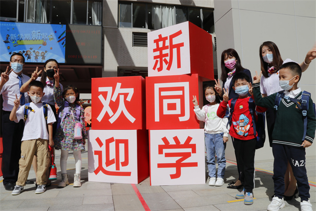 同学们背着书包,带着假期里完成的各项实践作业,高高兴兴地走进校园,热情地与老师和小伙伴们打招呼。