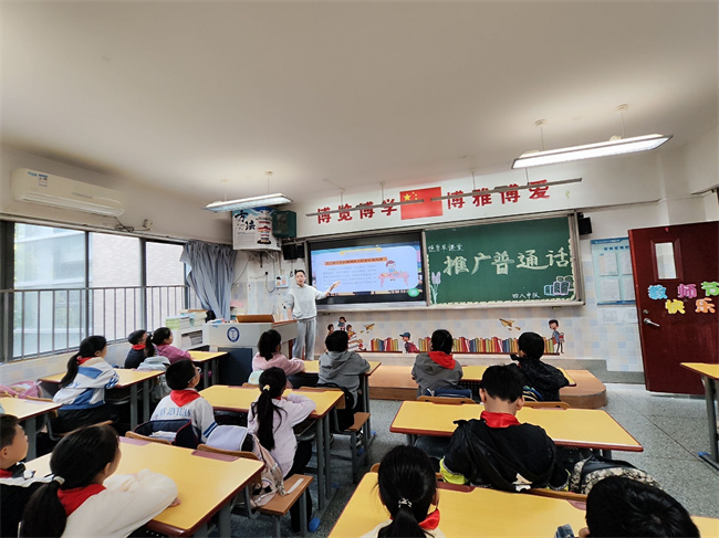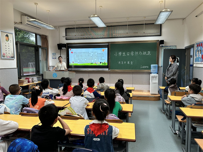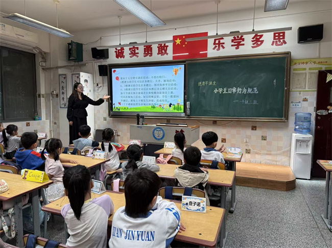 9月19日早课堂聚焦推广普通话与语言文明规范。通过趣味语言动画、普通话发音示范和“方言转普通话”互动游戏,学生们清晰掌握了标准发音技巧与日常用语规范。活动中,孩子们踊跃参与朗读,认真纠正发音偏差,在轻松的氛围里展现出对规范语言的热情与学习主动性。“普通话小标兵”评选环节气氛热烈,大家积极展示学习成果,有效提升了语言表达能力,为营造校园文明语言环境奠定基础。