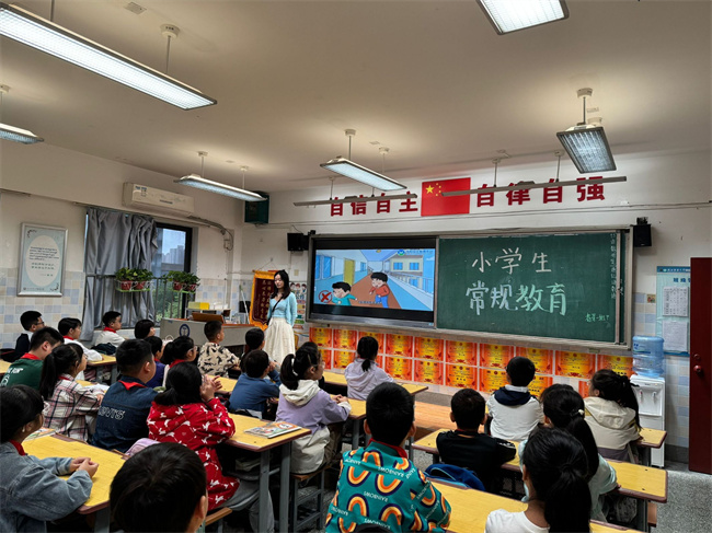 9月5日早课堂聚焦课间安全常规教育与风险防范。通过趣味动画短片和师生模拟演示,学生们清晰掌握了课间不追逐打闹、上下楼梯靠右行、文明使用体育器材等安全准则。活动中,孩子们认真观察、积极模仿,在情景模拟里主动纠正不当行为,展现出较强的安全认知和规则意识。小组交流环节氛围活跃,大家分享课间安全小妙招,有效强化了自我保护能力,为营造安全有序的课间环境筑牢根基。