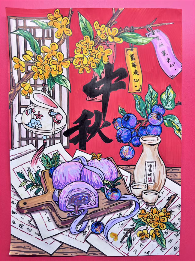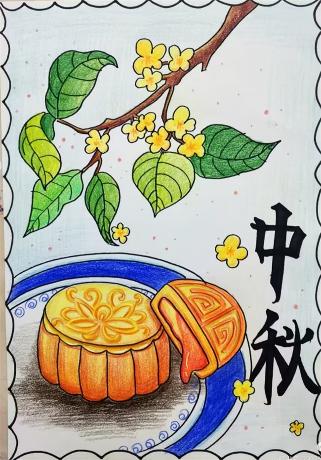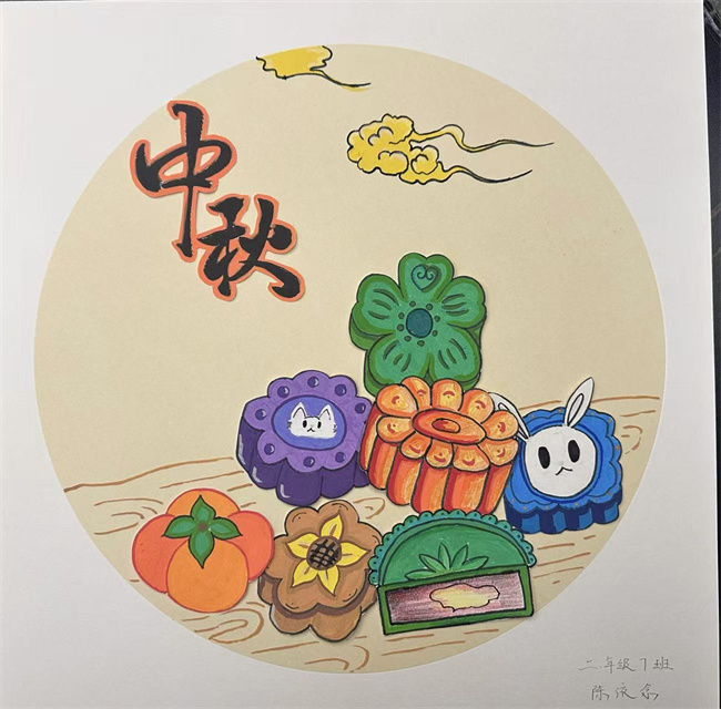 二年级学生以 “我心中的月饼” 为主题进行绘画创作。他们充分发挥想象力,设计出独一无二的月饼图案,有的融入卡通元素,有的结合传统纹样,用画笔勾勒出对中秋节日的美好想象,让传统节日的文化韵味在孩子们心中流转。