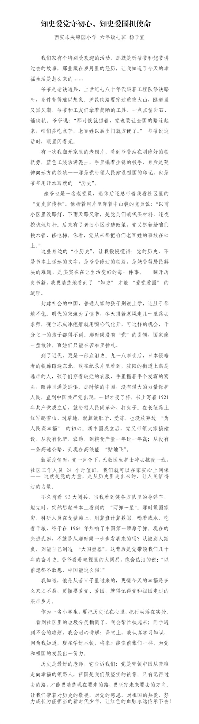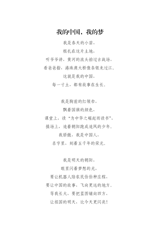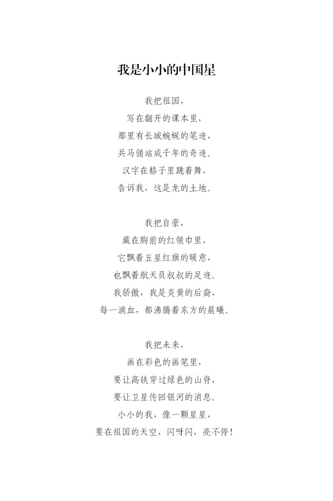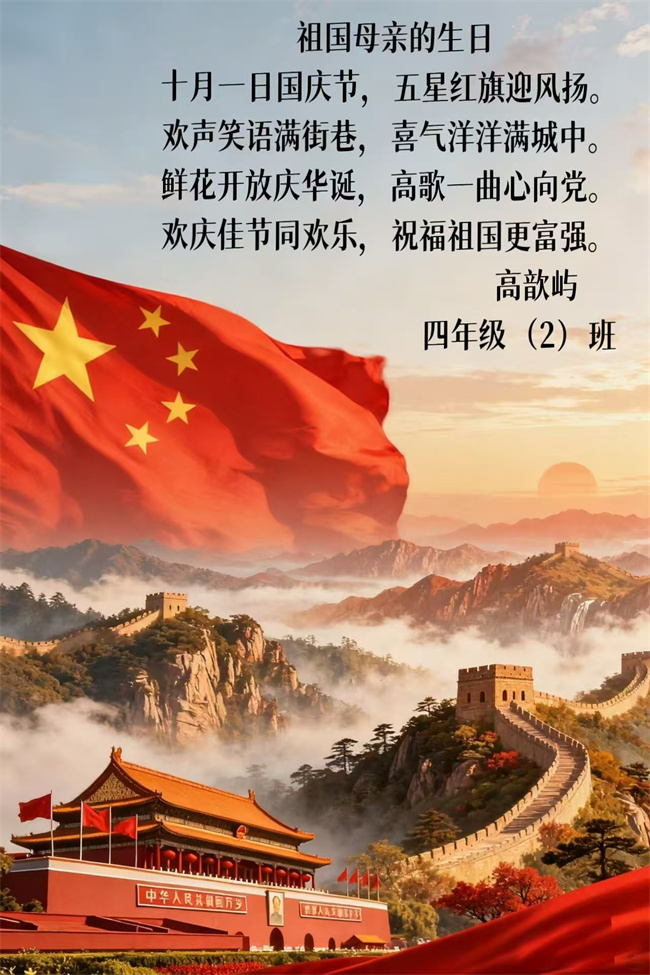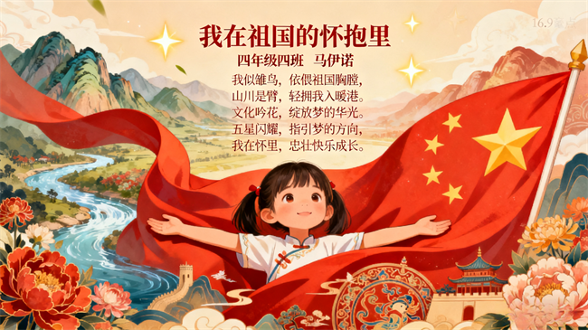 四五六年级学生则以文字抒怀,参与 “我在祖国的怀抱里” 主题创作。四、五年级学生用诗歌或短文描绘祖国的蓬勃发展,畅想美好未来;六年级学生以更具思想深度的短文,表达身为中国人的骄傲与担当。