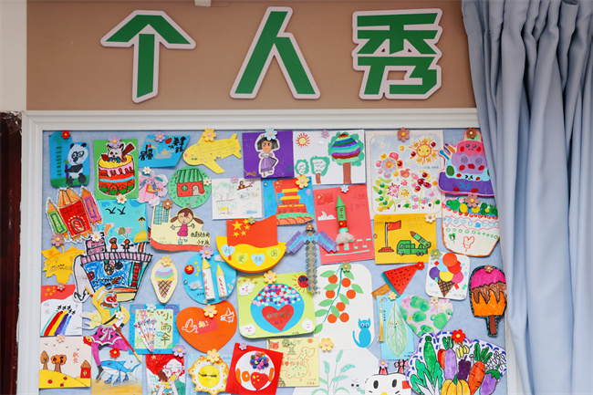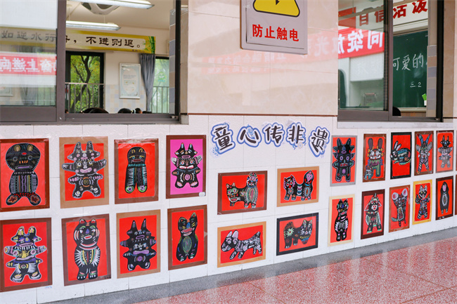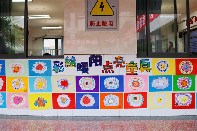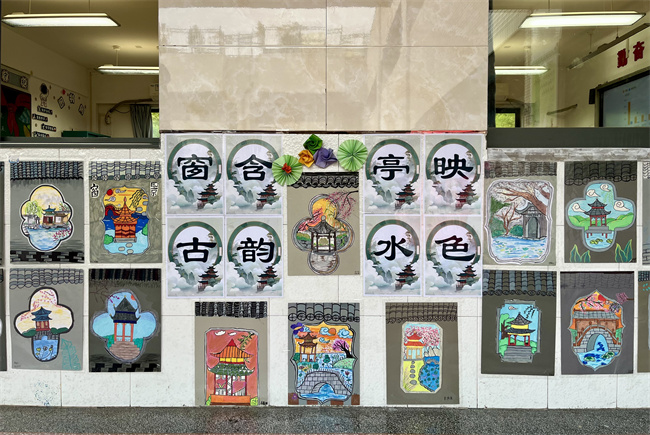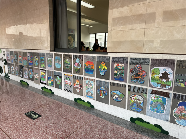 教室外展墙成为了展示班级特色的重要窗口。各班充分发挥创意,围绕"窗含古韵 亭映水色"、"童心传非遗"、"彩绘暖阳点亮童真"等主题,将学生的绘画作品精心布置。这些作品主题鲜明、充满童趣,不仅美化了校园环境,更展现了班级文化特色,成为校园里一道亮丽的风景线。