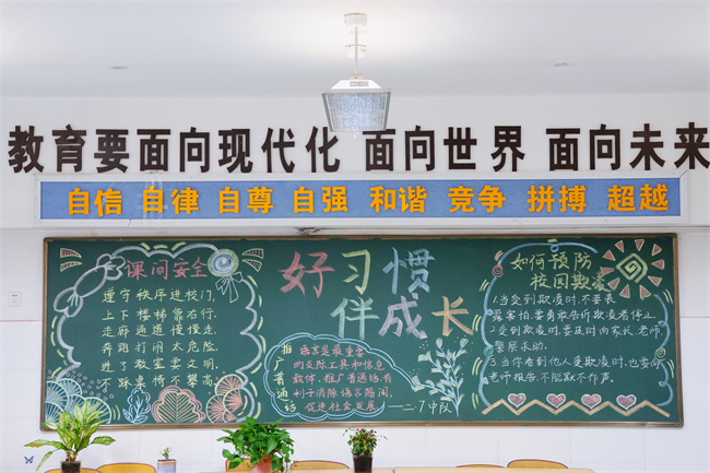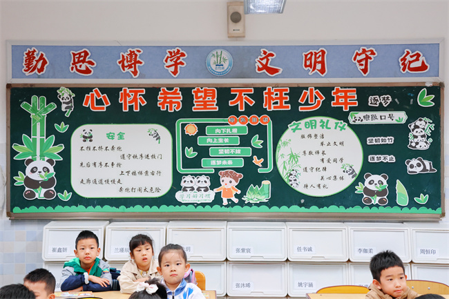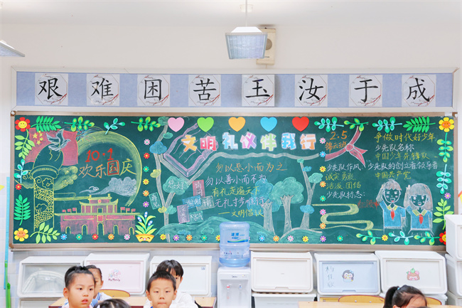 各班黑板报设计独具匠心,内容丰富多样。低年级以"文明礼仪"为主题,用鲜艳的色彩和可爱的图案,潜移默化地引导学生们养成良好的行为习惯;中年级聚焦"安全教育",通过生动的画面和简洁的文字,让安全知识深入人心;高年级则围绕"理想信念",用精美的设计和深刻的内涵,激励学生树立远大志向。每一块黑板报都是一幅精美的艺术作品,更是教育的重要阵地。