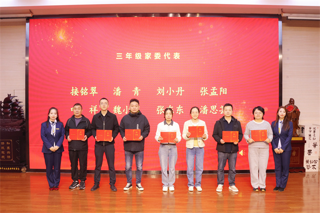 德育副校长孟黎宣读新一届校级家长委员和各年级家委会成员聘任决定。随后,马学梅校长为校级家委代表颁发聘书,各年级分管领导与年级组长分批为各年级家委颁发聘书。这一张张聘书,不仅是学校对家委们的信任,更是家委们肩负起共育责任的象征,标志着新一届家委会正式踏上协同育人的新征程。