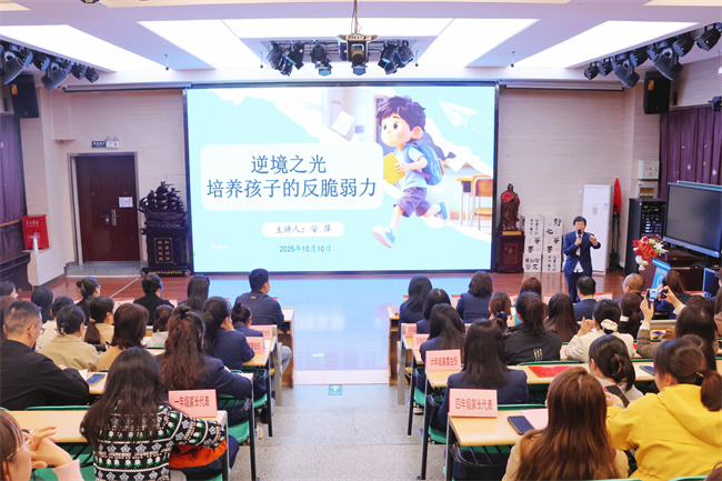 活动最后,安萍主任进行《逆境之光 培养孩子反脆弱力》讲座。课堂聚焦家长关切的教育话题,为家长们传授科学家庭教育理念与方法,助力形成家校协同、互补共育的良好生态。