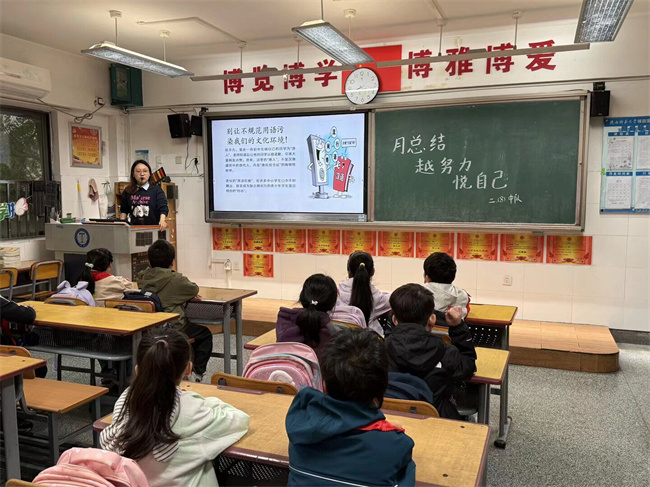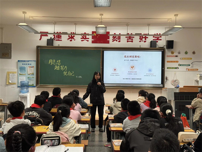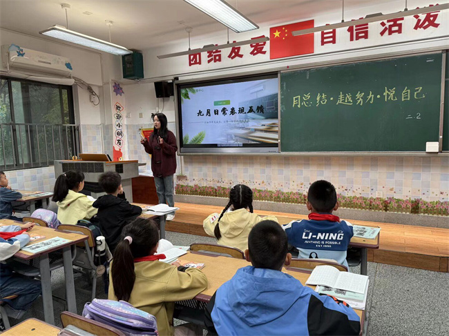 10月11日早课堂聚焦“成长与悦己”主题月总结。通过“成长树结果啦”成果分享、“总结小妙招”交流及“积极暗示魔法”传递等环节,学生们回顾成长收获,提升自我。活动中,学生们既明确了文明用语的重要性,又理解了“总结→努力→悦己”的正向成长循环,深刻体会到“越努力越悦己”的道理。交流环节,大家带着“三大锦囊”:总结、努力、悦己,对十月成长充满期待,决心在新的一月遇见更好的自己。