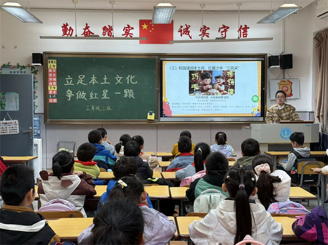 10月24日早课堂以介绍“立足本土文化 争做红星一颗”大思政活动为主旋律,通过详细的活动介绍激发了锦园学子积极性。本次大思政活动于2025年10月20日—11月28日开展,围绕“文化+食安+法治”开展系列活动。通过“我与校长话长安”对话、本土故事展播、“长安魂·健康心·法治行”课堂等形式,同时还推出“巧手捏花馍,长安食安情”非遗活动,以及“我的长安三记忆”文化手账创作,让学生在探访文化场馆、学习食品安全法、创作手账的过程中,感知西安作为十三朝古都的历史魅力,掌握健康技能、树立法治观念,助力成长为兼具本土情怀、健康素养与法治担当的“新时代少年”。