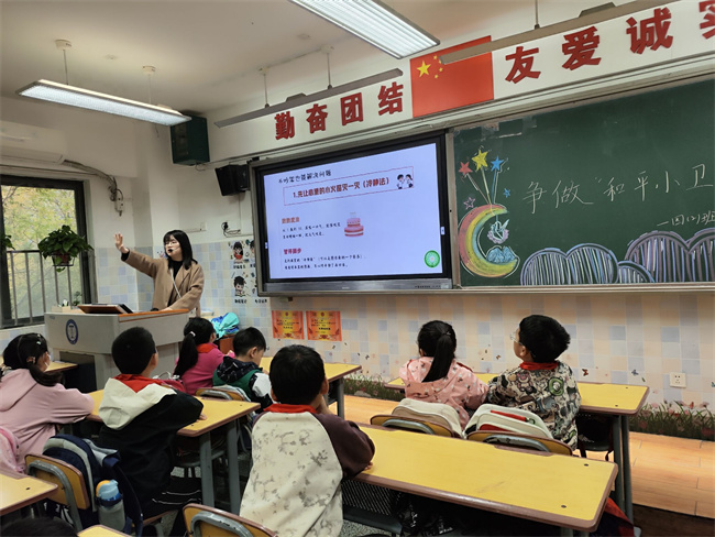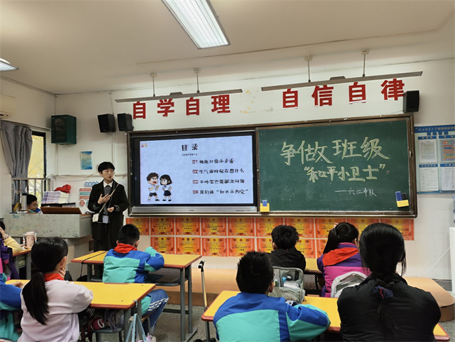 各班以《争做班级“和平小卫士”》展开心理健康专题教育。通过情景模拟、绘本故事等生动形式,引导学生在趣味中学习化解矛盾的方法。课程着重培养了学生三个方面的能力:正确认识冲突的常态性、学会在矛盾中管理情绪、掌握“我信息”表达等沟通技巧。低年级孩子在故事中感受友善的力量,高年级同学则在案例分析中学习复杂的沟通艺术。这场全员参与的心灵洗礼,为营造和谐班级氛围、构建平安校园奠定了坚实基础。