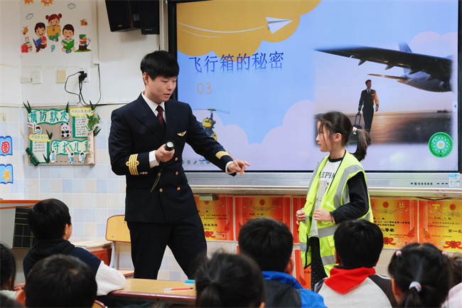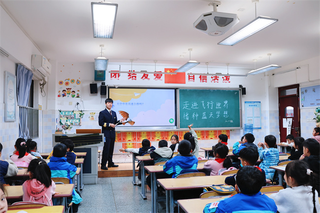 二年级一班李麓川同学的爸爸走进课堂,为孩子们带来了一节别开生面的“飞机知识”主题课程。李爸爸通过生动的飞行视频,将复杂的航空知识以通俗易懂的方式呈现给孩子们。在讲解驾驶舱仪表盘时,他还特别设置了体验环节,邀请孩子们扮演“小飞行员”,在模型驾驶舱前亲手操作,将抽象的航空知识转化为触手可及的快乐体验。课堂上,孩子们眼中闪烁着好奇与向往,积极互动,气氛热烈。课程结束时,李爸爸还为每位同学准备了精美的小礼物,让这次航空启蒙之旅更具纪念意义。这场特别的课程不仅激发了孩子们对航空领域的兴趣,更在他们心中播下了探索科学、勇敢追梦的种子。