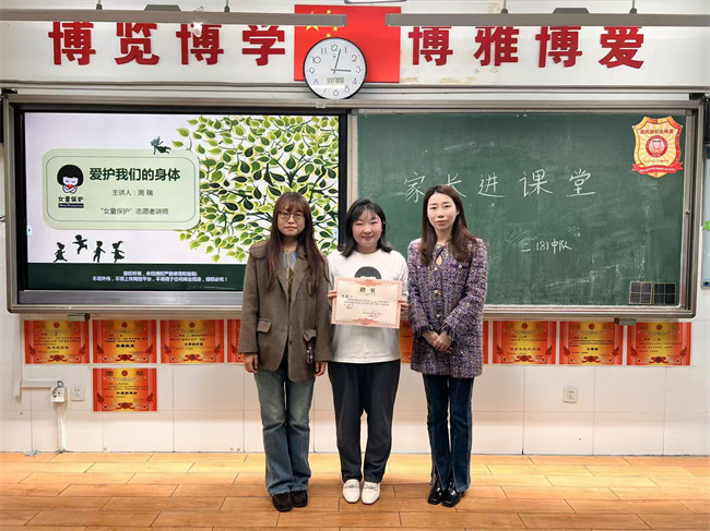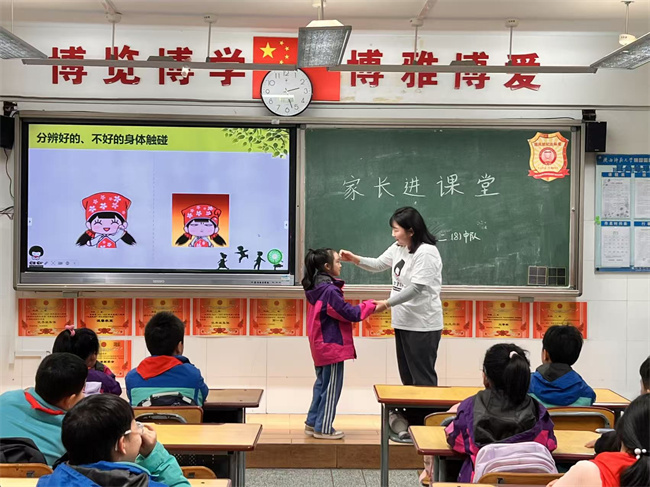 二年级八班张芷涵家长杨丽女士联合女童保护协会讲师周瑞女士,为孩子们带来了一节“爱护我们的身体”主题家长课程。周老师通过趣味图片、情景模拟和互动问答,用孩子们能理解的语言,生动讲解了身体隐私部位的界定、如何识别不安全接触以及遇到危险时的应对方法。在角色扮演环节,孩子们积极参与,模拟“陌生人求助”“熟人过度亲密”等场景,在实践中学习正确拒绝与求助的技巧。活动最后,学校行政管理中心李冰主任为周瑞女士颁发聘书,标志着家校社协同守护儿童安全工作迈上新台阶。这堂实用而生动的安全教育课,为孩子们筑起了一道坚实的安全“防护墙”。