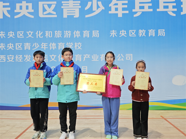 11月25日至26日,2025年未央区青少年乒乓球赛在西安城市运动公园体育馆激烈举行,西安未央锦园小学乒乓球队员在赛场上表现出色,荣获团体第三名。