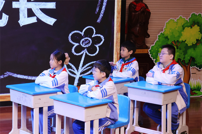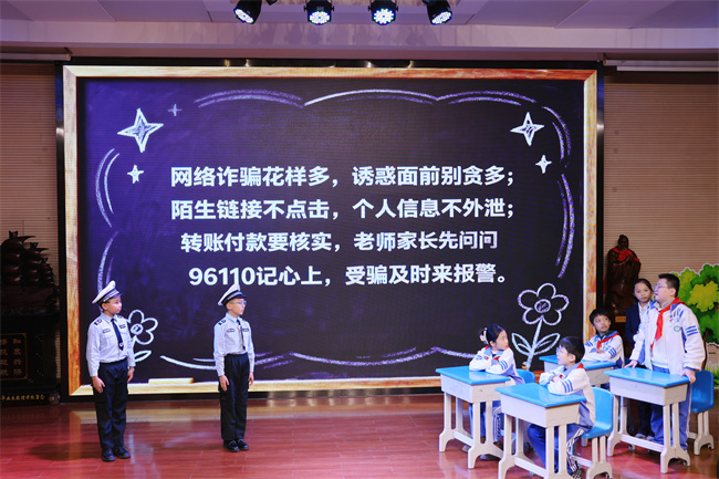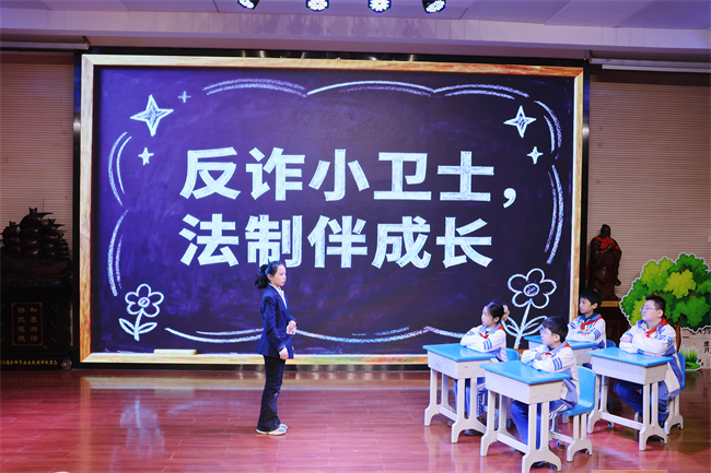 活动伊始,五8班学生倾情演绎的法治小剧场《反诈小卫士》率先暖心登场。他们以生动鲜活的情景再现、通俗易懂的童真话语,将反诈知识巧妙融入沉浸式表演之中,直观展现了未成年人日常可能遭遇的诈骗陷阱,更清晰传授了实用易懂的防范技巧。这场兼具童真意趣与法治专业性的小剧场,既让法治理念深入人心,更为本次家长课堂注入满满温情与互动活力,稳稳奠定了活动温馨且有意义的良好基调。