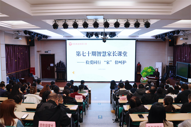 为深入贯彻落实《未成年人保护法》,构建“学校主导、家庭尽责、社会协同、司法保障”的共育新格局,2025年11月25日,西安未央锦园小学隆重举办第七十期“智慧家长课堂”。学校以“法治护航成长”为核心主题,特邀西安市未央区检察院郭涛主任带来《检爱同行 “家”倍呵护》专题讲座,校领导班子成员与200余名家长代表齐聚一堂,共探新时代未成年人保护实践路径,以家校社协同之力为孩子们筑牢安全成长屏障。