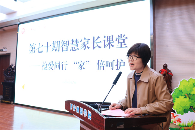 讲座中,郭涛主任以司法实践中的真实案例为切入点,深刻剖析了当前未成年人成长面临的多元风险与挑战——这一主题的精准定位,正是锦园小学基于对学生成长需求的深度调研与家校共育痛点的精准把握。郭主任深入浅出地阐释了检察机关在监护支持、犯罪预防等方面的职能,着重强调“家庭是未成年人保护的第一道防线,学校是协同守护的核心阵地”。她指出,新时代家校共育亟需法治思维赋能,家长既要关注孩子学业成长,更要重视自身法治素养提升,学校则持续搭建优质平台助力家长成长。