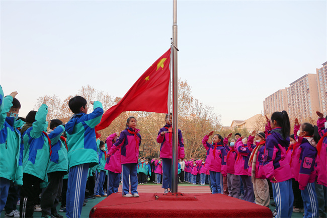 不久前,党的二十大四中全会胜利召开,描绘国家发展新蓝图。回望征程,中国科技成果斐然,“天宫课堂”带青少年触摸星辰,是航天人“飞天硕果”;复兴号高铁速度惊人,是新时代“速度之花”。这些奇迹源于一个个“五年规划”,标记着我们的奋斗之路。2025年12月15日,西安未央锦园小学全体教师举行了“让梦想在锦园沃土扎根生长”为主题的庄严的升旗仪式。