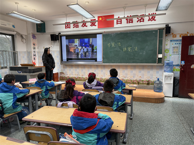 这段情景剧表演在全校展播,收获了广泛而积极的反响。各班学生在观看后展开了热烈讨论,不少学生纷纷表示“知道了不能轻信陌生人的话”“要回家告诉爷爷奶奶扫码送礼物可能是骗局”。老师们反馈,这种“情景剧+讨论”的模式,比单纯说教更能抓住学生的注意力,法治知识的吸收效果显著。学生们在潜移默化中不仅记住了情节,更记住了背后的安全准则和法律原则,真正实现了法治精神从“入眼入耳”到“入脑入心”的转化。