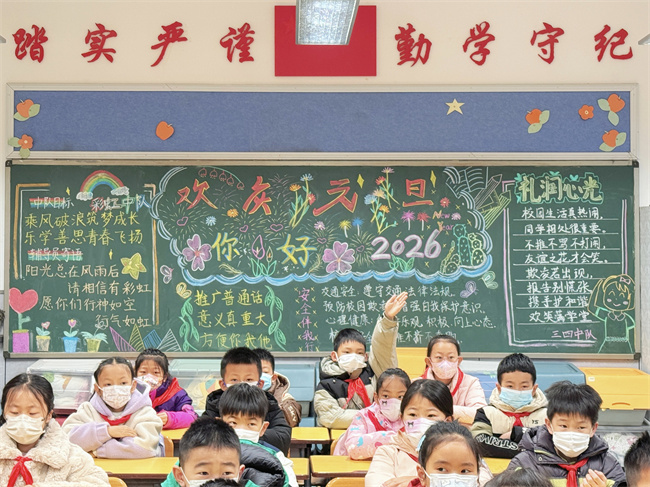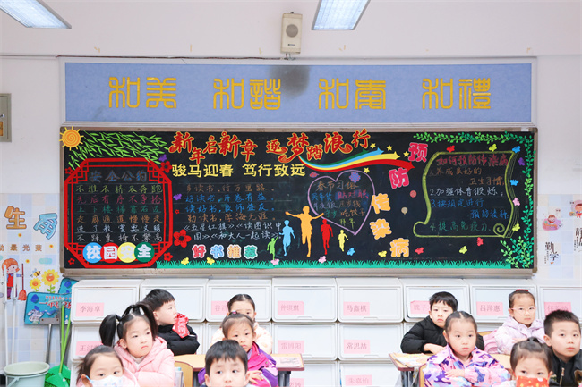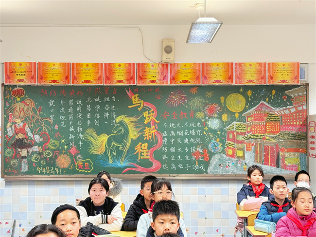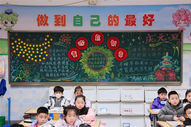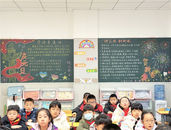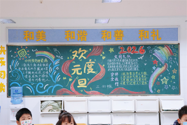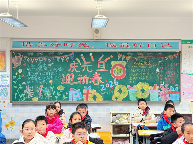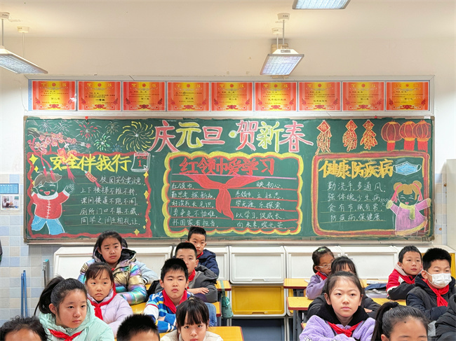 本次黑板报评比以“庆元旦 贺新春”为主题,各班师生精心策划,将方寸之地变为传递佳节喜悦、弘扬传统文化的窗口。同学们巧妙构思,用缤纷的图画和工整的文字装点方寸天地:低年级板报童趣盎然,洋溢着纯真欢乐;中高年级设计则融合传统元素与新年展望,版面精美,寓意深远。一块块黑板报宛如一幅幅精美的画卷,让节日的暖意和文化的韵味弥漫在整个校园。