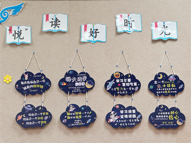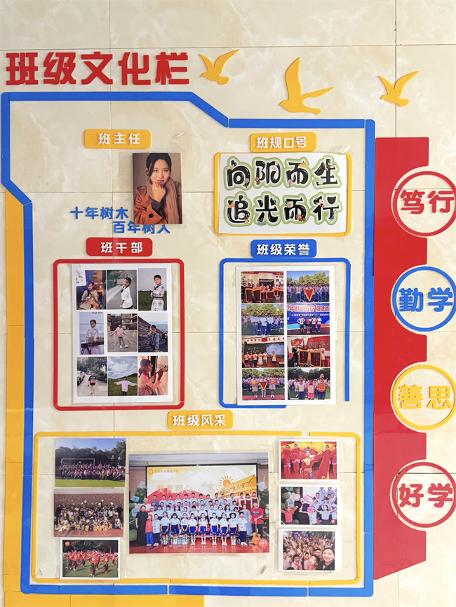 教室内的环境布置则处处体现着“家”的温馨与育人巧思。图书角书籍琳琅满目,分类有序,散发着浓郁书香;绿植角生机盎然,由学生自主认养呵护,培养了责任感与爱心。此外,各班的班务栏、学习园地、荣誉墙等布置也各具特色,物品收纳整齐划一,个性化装饰点缀其间。整洁、温馨、富有教育意义的教室环境,让同学们在潜移默化中受到美的熏陶。