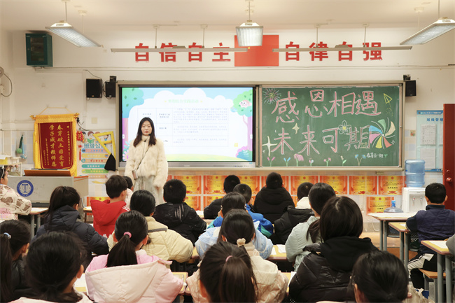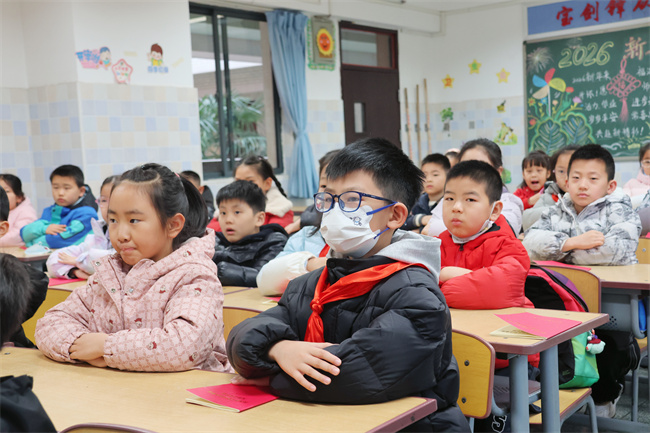 活动伊始,全体师生共同观看了我校与友好学校香港马头涌官立小学联合录制的新年祝福视频。跨越山海的真诚问候、温暖动人的校际情谊,让现场充满融融暖意,也为典礼拉开了温馨的序幕。