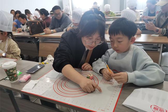 孩子们怀揣好奇与热忱,专注学习揉、捏、搓、压等传统面点技艺,稚嫩的小手在面团上灵动穿梭,将童真创意融入每一个细节;家长们俯身相伴、耐心协助,与孩子默契配合,共同雕琢造型、点缀细节,在指尖互动中传递浓浓亲情。现场欢声笑语此起彼伏,揉面声、交流声、赞叹声交织成温馨的育人乐章,普通的面团在亲子携手创作下,蜕变为一个个造型灵动、憨态可掬、独具创意的花馍作品。每一件作品不仅是非遗技艺的生动展现,更承载着亲子间的美好羁绊,让非遗文化在亲子陪伴中浸润童心,让传统技艺在少年心中生根发芽。