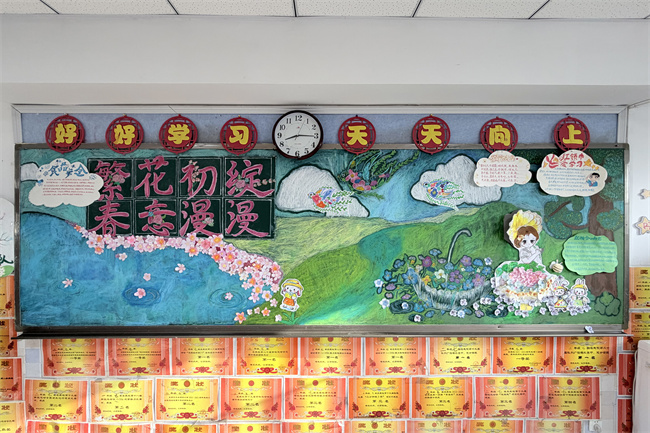 一块块黑板报主题鲜明、色彩明快,凝聚着孩子们的巧思与创意;一面面室外展墙更是精彩纷呈,绘画、书法、手工作品琳琅满目,每一幅都展现着班级的独特个性。漫步走廊,仿佛穿行于一道道流动的文化风景线,让人感受到浓浓的育人氛围。