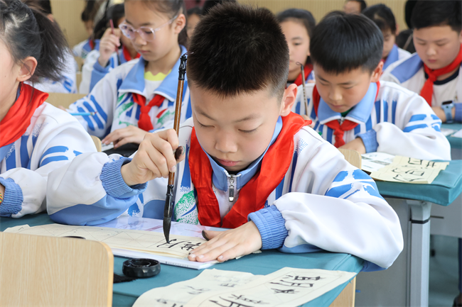 书法教师李楠执教了《月字旁》一课。课堂上,李老师主要针对左右结构月字旁的书写进行教学,目的在于让学生掌握偏旁的书写方法,并理解其与其他部分的关系,以此提升学生的结构意识。本节课教师设置古诗带入情景的“课前三分钟”,旨在增强学生对于传统文化的热爱。在教学过程中,教师注重培养学生正确使用学习工具的习惯,以及“心正则笔正”的学习态度,强化学生的规范意识。