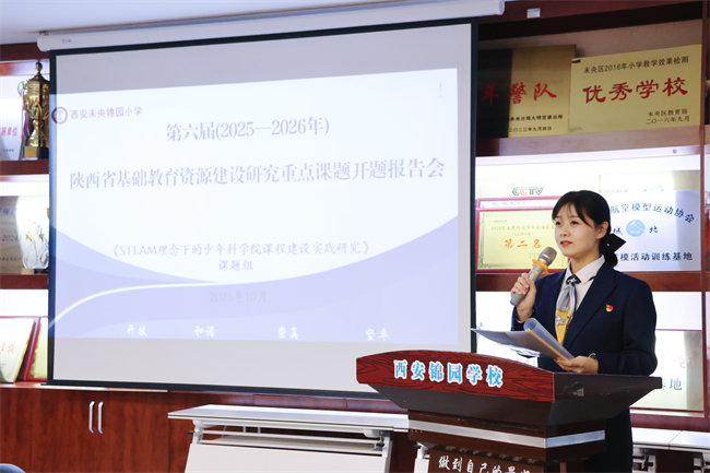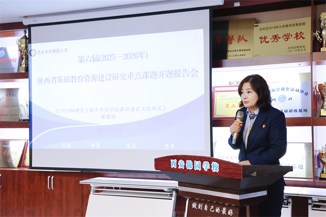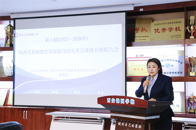 2025年10月17日下午,第六届(2025—2026年)陕西省基础教育资源建设研究重点课题《STEAM理念下的少年科学院课程建设实践研究》开题报告会在我校一楼会议室举行。