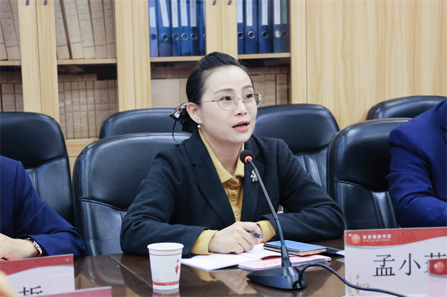课题主持人马校长代表课题组发言,对贺卫东教授、孟小莙博士的专业指导,对樊校长和学校的大力支持表示感谢。并郑重表态,课题组将认真梳理、吸纳专家的意见建议,严格按照研究计划推进工作,“不负学校的期望与重托,带领全体成员凝心聚力、攻坚克难,确保课题研究高质量完成”。