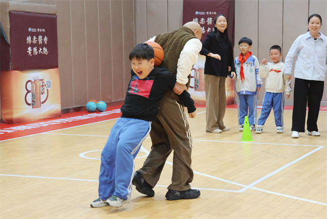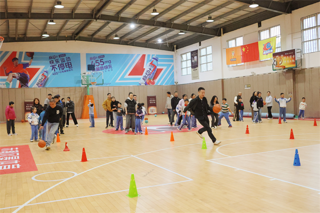 紧接着,活动进入亲子协作环节。各家庭组相继参与了“背对背接力”“众人扔球”等趣味项目,在紧密配合中展现出良好的默契;在随后的“投篮挑战赛”中,家长与孩子通力合作,完成多种指定投篮动作,在友好竞争中体验运动的乐趣。