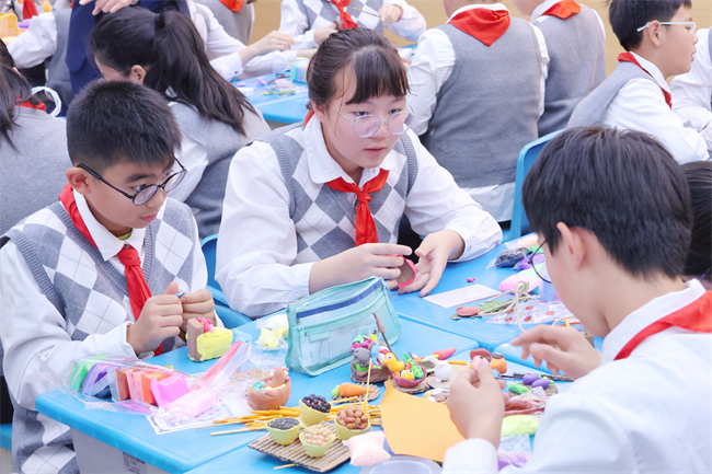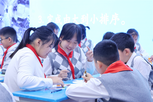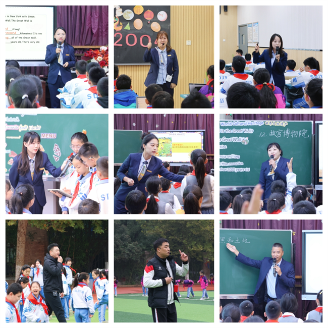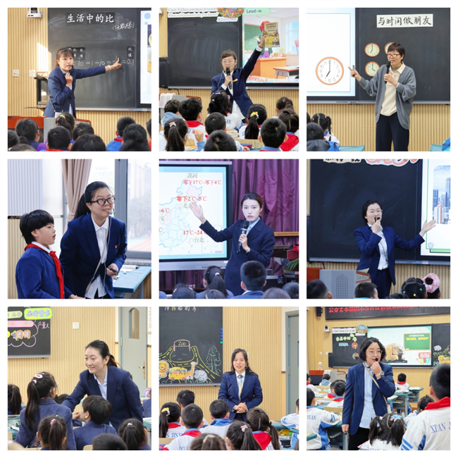 活动中,27名高级、一级教师跨学科协作,围绕“美味‘分’享”“拼贴诗画韵”“数说温度 文话冷暖”“走进中国世界文化遗产”“时间”“确定位置”等主题,打造多场创新课堂。教师们借助AI互动课件、数据可视化工具等,将英语与数学、语文与美术、数学与语文等学科知识有机融合,课堂聚焦学生综合素养,引导学生在“英语点餐与数学分餐”“文学感悟与艺术创作”“温度计量与诗句赏析”等跨学科任务中主动探究、小组协作,思维在学科联动中不断进阶,展现出浓厚的学习兴趣与探究热情。