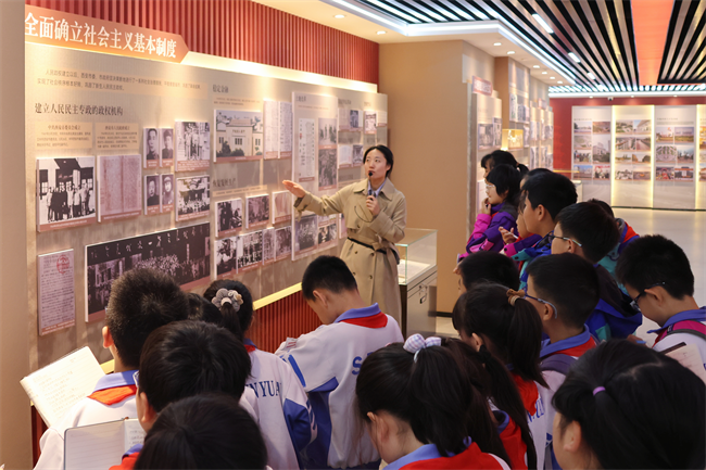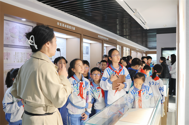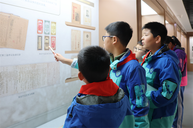 红色故事的余温尚未褪去,同学们又循着历史足迹探寻古城变迁。跟随着讲解员的讲述,一幅幅老西安的街景照片、一张张泛黄的城市规划图纸,与记录新时代发展的建设档案相互映照。原本静默的档案资料被生动串联,化作一幕幕鲜活的城市记忆。孩子们踮着脚尖仔细端详,不时举手追问,展厅内洋溢着浓厚的求知热情。