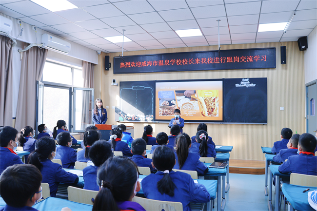 活动伊始,两节高质量展示课拉开了交流序幕。威海市温泉学校两位校长与锦园小学英语、数学学科全体教师一同走进录播教室,沉浸式观摩课堂教学。