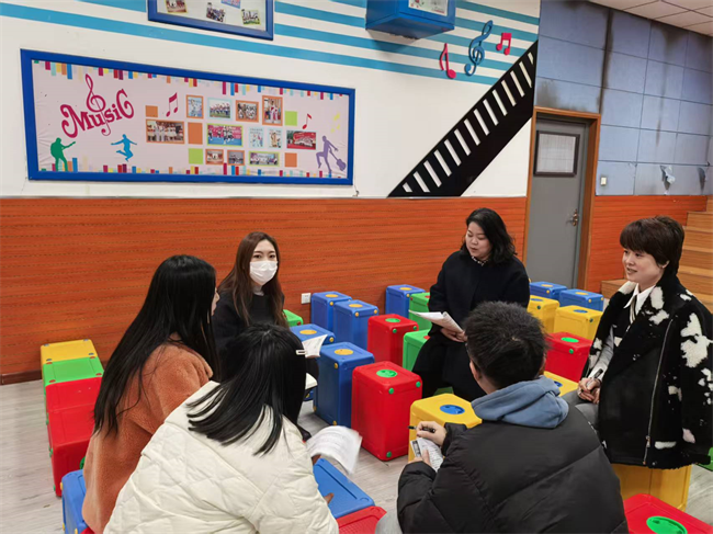 活动围绕“问题导向+理论落地+实践演练”展开。教研组长荀诗馨开场点明课堂常规的基础作用,教师们现场分享乐器管理、注意力保持等教学困惑;焦娇、倪旎两位老师结合课标解读常规隐性要求并发布《小学音乐课堂常规细则》明确课前准备、纪律要求、乐器使用规范等具体内容,为教师提供了统一的教学管理标准;朱育瑶、关雯两位老师分享“节奏口令强化课堂秩序”“儿歌口诀简化常规要求”等趣味化培养方法,李根源交流了课堂突发情况处理和长效激励机制经验。随后分组实操中,教师们合作设计“乐器归位小竞赛”“课堂指令反应游戏”等训练活动,现场模拟展示的过程让经验快速转化为可落地的教学方法。