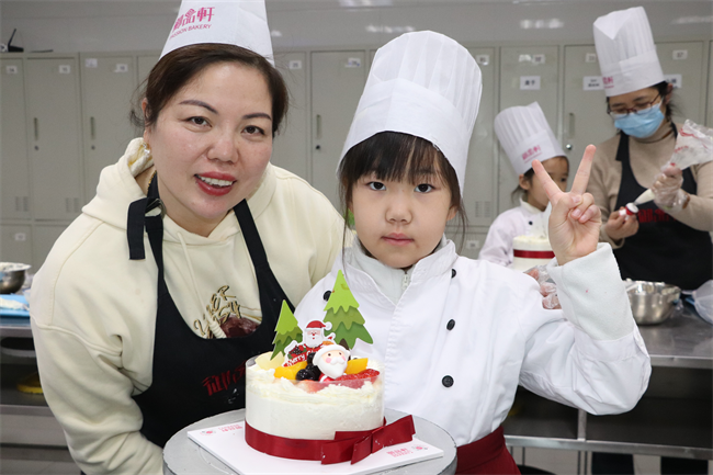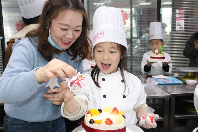 紧接着的DIY蛋糕环节将活动推向高潮。孩子们换上烘焙服,在老师的指导下,认真地为蛋糕裱花、装饰水果。有的绘出灵动爱心,有的拼出多彩花朵,有的与家人伙伴默契合作,共同完成独具匠心的作品。看着亲手制作的蛋糕,每个孩子脸上都绽放出喜悦的笑容。