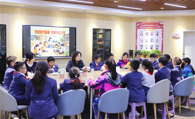 2025年12月17日下午,首场沙龙温暖开启。本期主题为“致敬时代楷模,共赴书香之约”,教学副校长贾建卉与五年级的师生代表们共同品读《等你回家》。