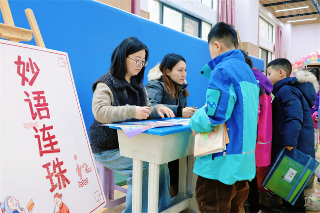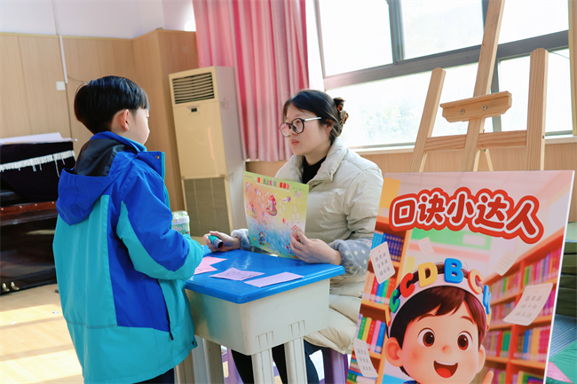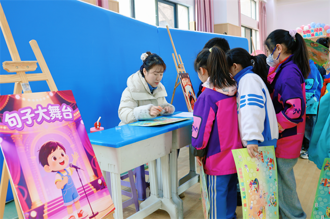 活动现场,老师们化身“闯关导师”,手持特色印章悉心引导。学生们分组持游园卡依次闯关,通过朗读、背诵、操作、表达等多种形式展现本领,每过一关收获一枚印章,喜悦之情溢于言表。评价环节打破“一刀切”模式,教师从发音、流畅度、熟练度等多方面给予3、2、1级印章评级,既重结果更重过程。