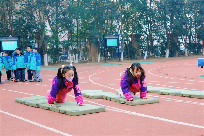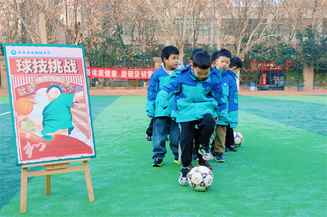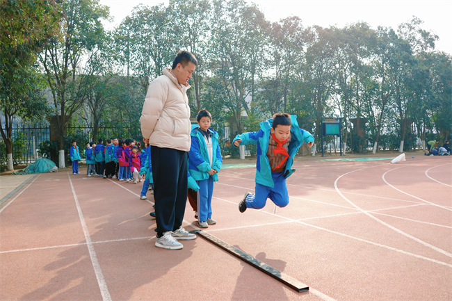 数学关前,“口诀小达人”脱口而出乘法口诀,速度与准确率双在线;“购物小当家”环节,孩子们熟练运用人民币知识模拟交易,尽显生活智慧;“不走回头路”则考验着他们的方位辨别与逻辑思维能力。英语“English Dreamland”中,孩子们自信演唱英文歌曲、流利应答问题,展现出良好的语言素养。操场之上,“跳远小勇士”奋力腾跃、突破自我,“欢悦稚童”一招一式展现武术操风采,“破障射门”环节尽显足球技能与拼搏精神。此外,“和美艺趣”“和雅笔韵”“小小科学家”“生活对对碰”等关卡,从艺术素养、科学探究、品德养成等维度,全面考查学生综合能力。