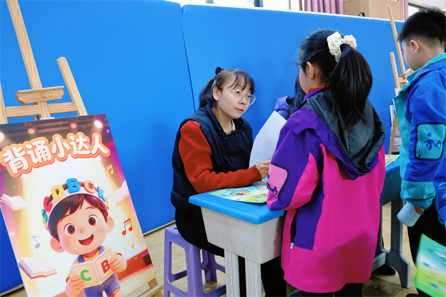 各学科关卡亮点纷呈、各具巧思:语文学科聚焦基础能力,拼音认读、诗词吟诵两大关卡前,孩子们琅琅书声不绝于耳,自信展现知识积累;数学学科紧扣生活应用,口算比拼时孩子们反应敏捷、快速作答,时间认读环节则考验着他们将知识转化为实践的能力;英语学科以情景化表达为核心,歌曲演唱、情景对话等环节,充分激发了孩子们的语言表达兴趣。