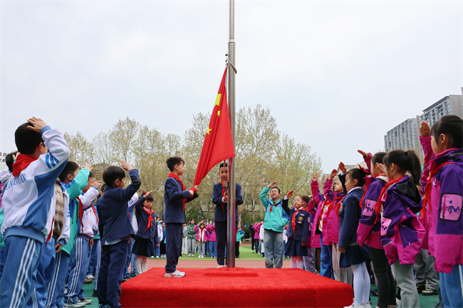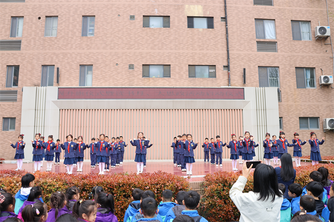 仪式在庄严的国歌声中拉开序幕。二(2)中队带来的展示《立春》,将春意与诗意交织成画。课程建设中心负责人宣读读书节活动方案。本届读书节以“AI时代 爱阅读”为主题,组织一系列共读活动,举办“少年讲书人”“书脸秀”“经典图书封面设计”等特色活动,同时邀请作家进校园,开设“校长有约”学生读书沙龙。引领学生在数字时代守护深度阅读,在信息万象中涵养人文精神。
