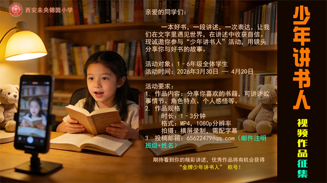 与此同时,“少年讲书人”活动拉开帷幕,诚邀全体和美学子以镜头为笔,讲述与好书的故事。在文字中遇见世界,在讲述中收获成长。