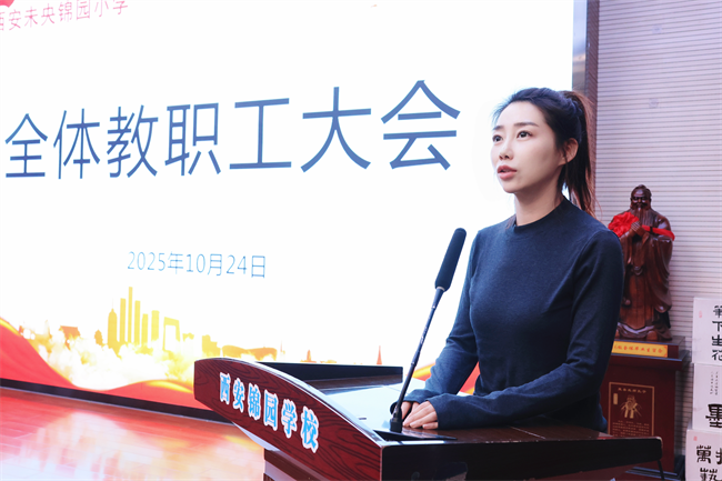 时维清秋,聚力启能。为全面部署近期学校重点工作,持续强化师德师风建设,切实提高教师队伍教科研能力,10月24日下午,西安未央锦园小学召开秋季教工会议。会议由行政管理中心负责人李冰主持,全体教职工参会。