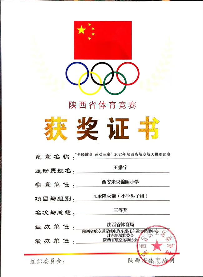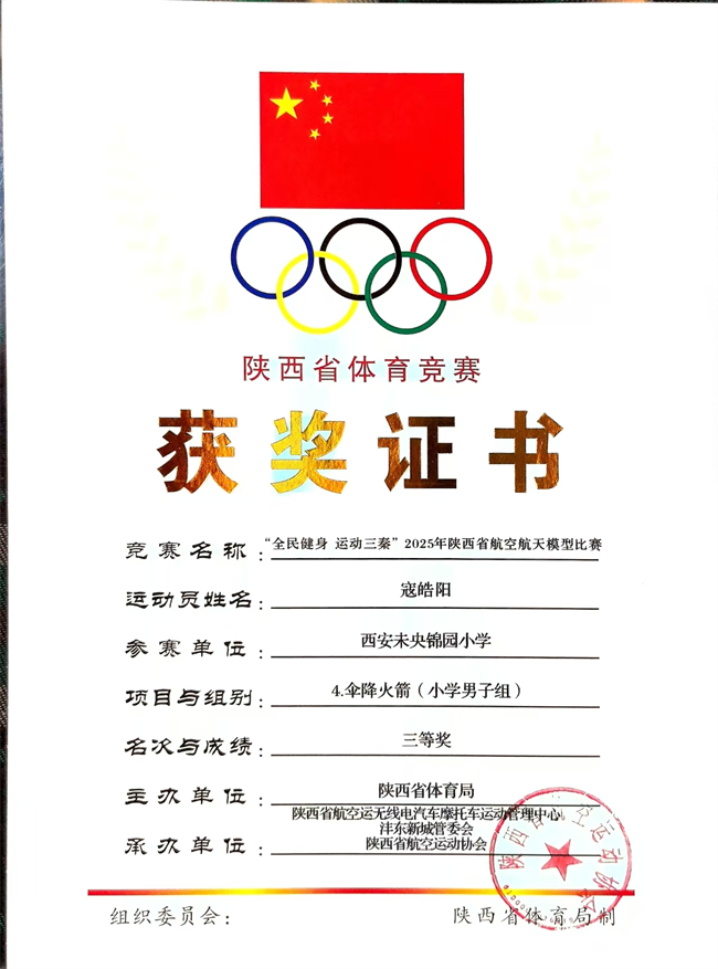 近日,由陕西省体育局、陕西省航空无线电汽车摩托车运动管理中心、沣东新城管委会、陕西省航空运动协会联合主办的“‘全民健身 运动三秦’2025年陕西省航空航天模型比赛”圆满收官。西安未央锦园小学师生凭借在航模教育领域的深耕细作与出色竞技表现,在赛事中荣誉满载,捷报频传。