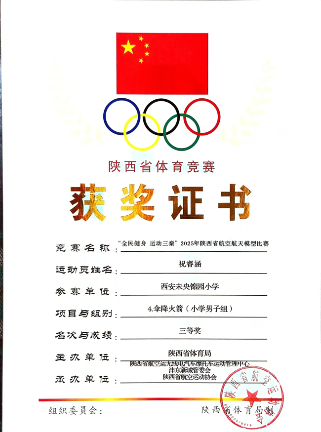 此次获奖,是对我校航模特色教育成果的充分肯定,也凸显了学校在素质教育推进过程中,对学生科技创新能力、实践操作能力培养的显著成效。未来,西安未央锦园小学将继续深耕航模教育领域,加强与专业机构的合作,为学生搭建更多探索航空航天奥秘、展现自身才华的平台,助力学生在科技与体育融合的道路上绽放更多光彩,推动学校特色教育再上新台阶。