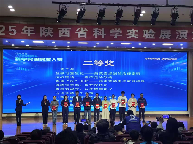 2025年11月20日,陕西省科学实验展演大赛圆满落幕。我校科创组张慧慧、吕茳、高瑾瑜、张萌、王燕五位教师,凭借作品《抗战密语--看不见的战线》一路过关斩将,历经区级选拔、市级比拼、省级半决赛(50支强队角逐)、省级决赛(30支队伍)的激烈比赛,最终斩获省级二等奖!作品以抗战历史为背景,创新融合科学实验与红色文化,通过演绎三种密信传递方法,既展现科学原理的巧妙应用,又揭示“科学是特殊年代看不见的战斗力量”的核心主题,兼具知识性、趣味性与思想性,赢得评委与观众一致认可。
