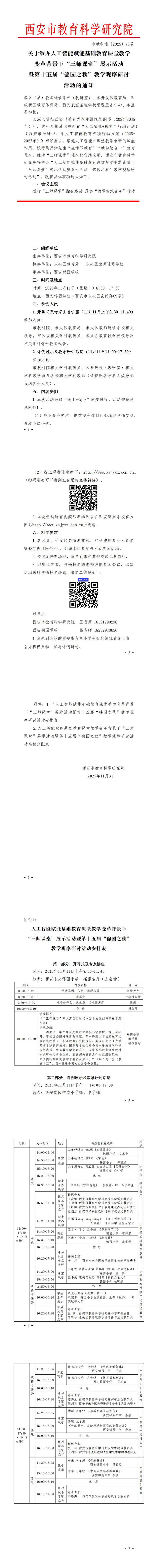 关于举办人工智能赋能基础教育课堂教学 变革背景下“三师课堂”展示活动 暨第十五届“锦园之秋”教学观摩研讨 活动的通知