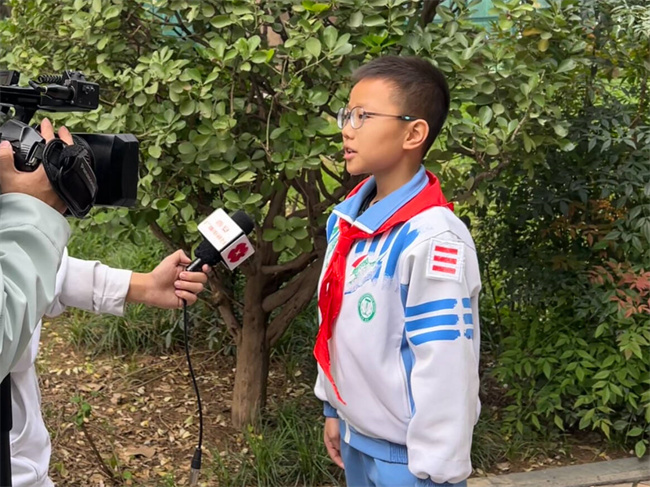 五年级二班学生林靖涵接受了西安电视台、西安日报等媒体的采访。他自信地分享道:“老师经常教导我们,一粥一饭当思来之不易。平时在家,我会积极践行光盘行动,还要号召爸爸妈妈和好朋友们都加入这个行列。因为节约粮食,是我们每个人的责任。”